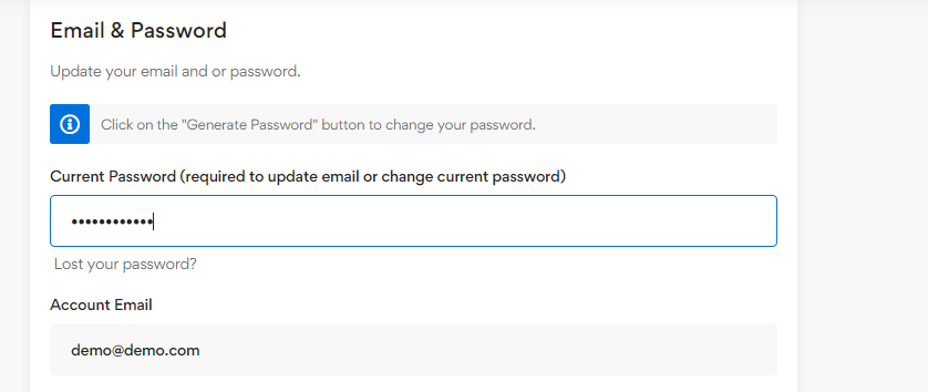 For security purposes, you will need to enter in your current password in order to verify that the person making the changes is the account owner. If you do not know your current password and need to reset it, log out and use the “Forgot Password” option. If you do not have access to the email associated with your account, please email support@media.onl and a member of our support team will assist you,