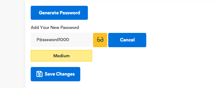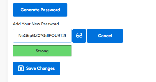 To show the field to enter in your password, click the “Generate Password Button” A suggested secure password will show in the field. YOU DO NOT HAVE TO USE THIS PASSWORD AND CAN CHANGE IT TO WHATEVER YOU WOULD LIKE .