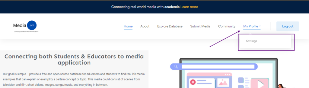 In the main navigation menu, however your mouse over “My Profile” to load the submenu. On the submenu, click “Settings”