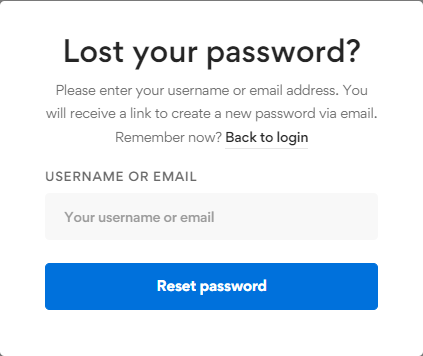 Once the next prompt shows up, enter in either username or password into the field below. If the username or email is in the system, the screen will show a prompt to show that the account was successful found and a link to reset your account password was sent to the email associated with the account. If the email or username is incorrect or not in the website’s database, an error will show. Note: If your account was deleted or suspended for violating our terms of service, you will not be able to reset your password.